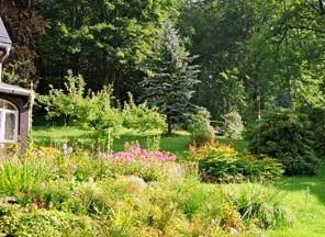 Das Haus befindet sich in einem parkähnlichen Garten am Berghang mit verschiedenen kleinen Themengärten (Stein- , Bauern- und Waldrandgarten + Wiesen).